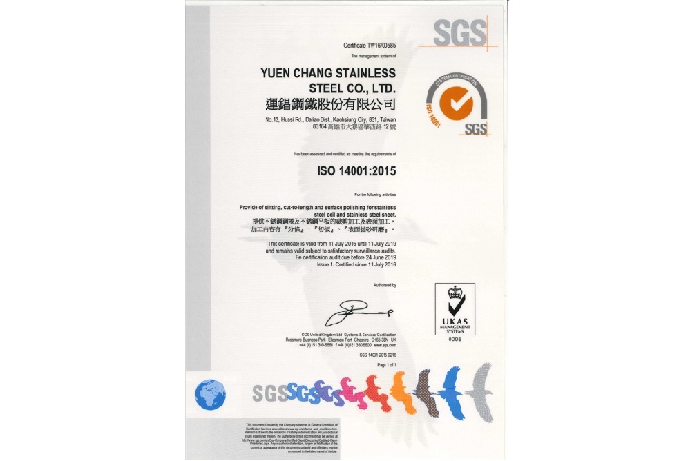 - Yuen Chang was certified with ISO14001:2015