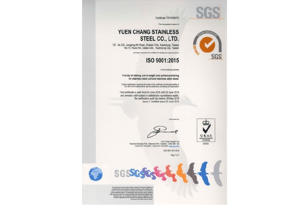 - Yuen Chang was certified with ISO9001:2015