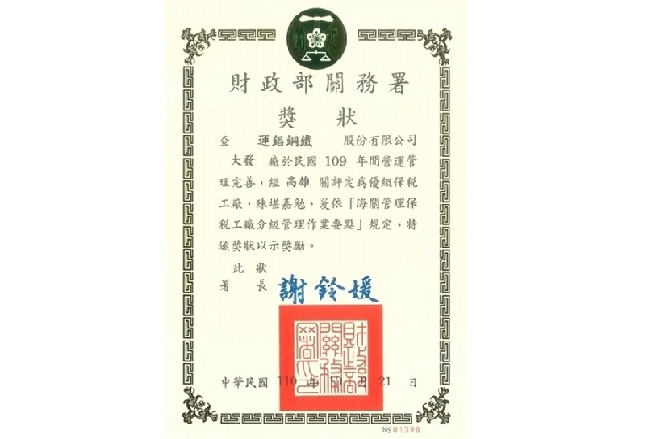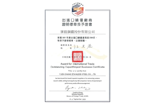 榮獲109年度出進口績優廠商前500名 2021/11/24